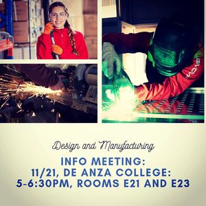 Entry level and advanced future students welcome. November 21st at De Anza College From 5-6:30 PM in E21 and E23. Mill, Lathe, Robotic Arm Pallet Loading and more.